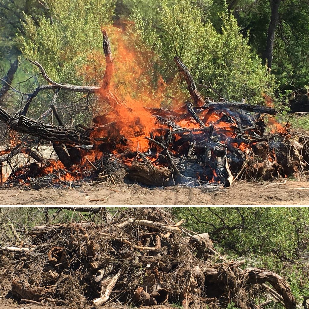 As you may remember, we experienced a flood of major proportions this spring. Part of our recovery process is clearing and burning debris piles in preparation for the summer fire season.