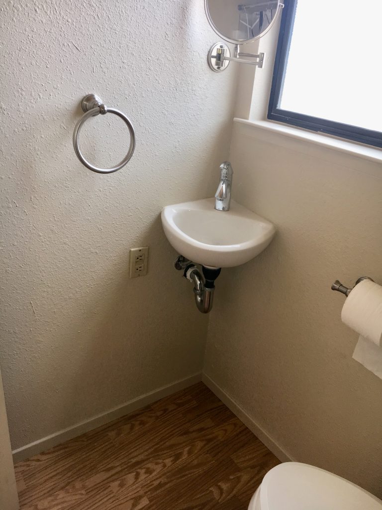 Here’s an “after” shot. This small bath is part of the bonus living space we’re calling: the apartment.