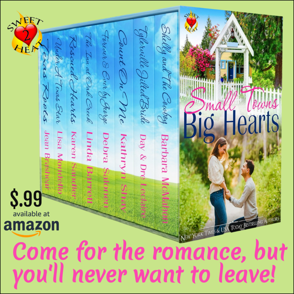 Download SMALL TOWNS BIG HEARTS and step into eight, unique, small town settings crafted by New York Times, USAToday, and bestselling authors. Come for the romance, but you’ll never want to leave!