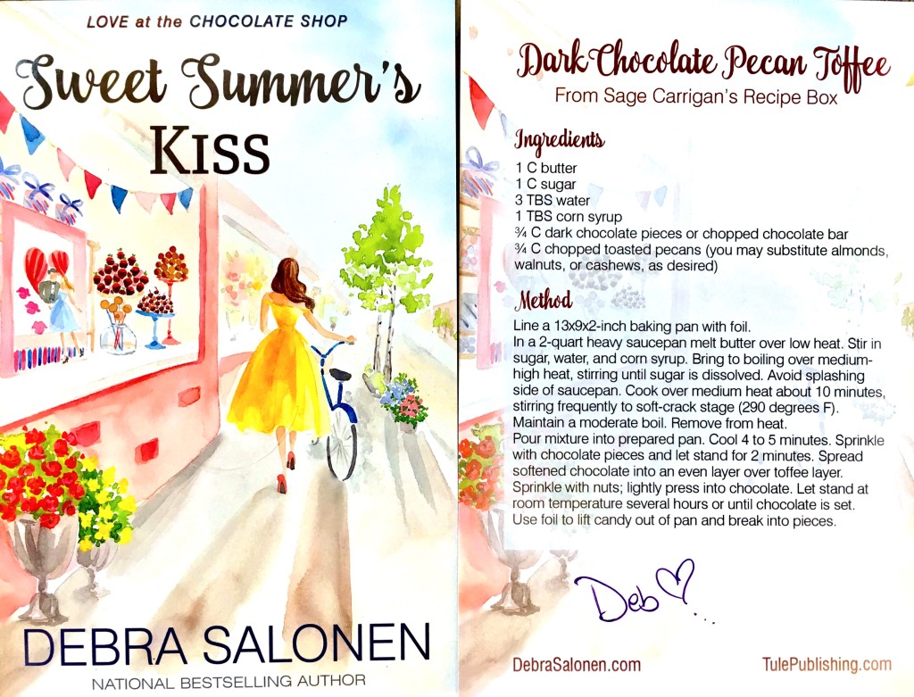 I’m giving away copies of this recipe card at the Love at the Chocolate Shop Facebook page this month. Any comment will get you registered. I’m picking 12 winners at the end of the month. If you’re a fan of chocolate, you belong with us: LATCS FACEBOOK